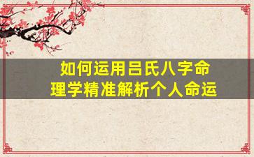 运用吕氏八字命理学(或称“吕氏四柱命理”)解析个人命运,需结合传统八字理论的基本框架和吕氏流派的独特技法。以下是系统化的解析步骤和要点: