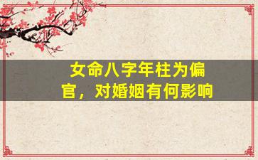 在八字命理中,偏官(又称七杀)在年柱对女命婚姻的影响,需结合十神特性和宫位综合判断。以下是具体分析:
