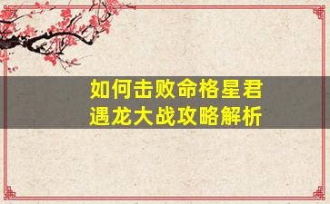 在《遇龙》游戏或相关作品中击败命格星君需要一定的策略和准备,以下是一份详细的攻略解析,供参考:
