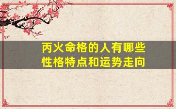 在八字命理学中,丙火命格(即日主为丙火的人)通常具有鲜明的性格特征和独特的运势走向。丙火为阳火,象征太阳之火,热烈、光明、充满能量,因此这类人往往个性外放,富有感染力。以下是其主要的性格特点和运势解析: