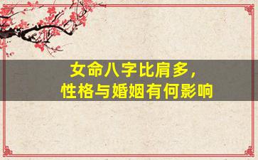 在八字命理中,比肩(与日主相同的五行,阴阳同性)过多对女命的性格和婚姻确实有特定影响,需结合八字整体格局、喜忌、官杀(正官、七杀)配置等综合分析。以下是常见的解读方向: