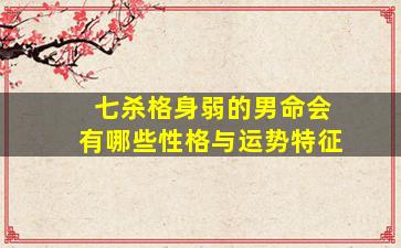 在八字命理中,"七杀格"(偏官格)身弱的男命,因七杀(克日主且阴阳同性)的强烈压制而日主能量不足,性格和运势往往呈现矛盾与挑战并存的特征。以下是具体分析: