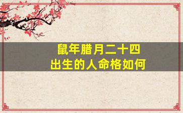 在中国传统命理学中,个人的命运分析通常结合生辰八字(年、月、日、时的天干地支)、五行、生肖、节气等因素综合判断。仅凭“鼠年腊月二十四出生”这一信息,可以初步分析以下方面,但需注意命理之说仅供参考,实际人生更多取决于个人努力与环境。