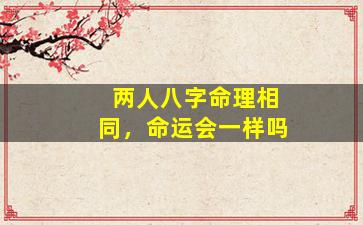 关于“两人八字命理相同,命运是否会一样”的问题,可以从命理学理论和现实角度综合分析: