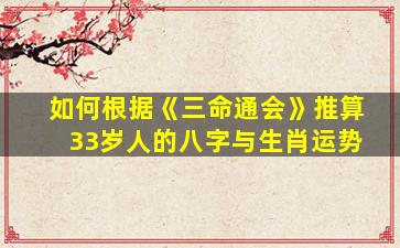 根据《三命通会》推算33岁人的八字与生肖运势,需结合传统命理学的干支历法、五行生克及神煞系统进行综合分析。以下是具体步骤和要点: