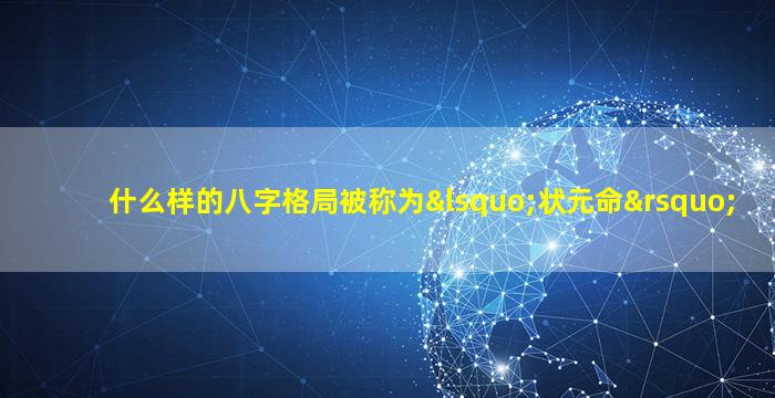 在传统八字命理学中,"状元命"并非一个严格定义的术语,但通常用来形容学业出众、科举考试(古代)或现代高考、竞争中易拔得头筹的命局组合。这类格局往往具备以下特征: