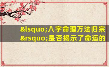 关于“八字命理万法归宗”是否揭示了命运的统一规律,需要从命理学的理论框架、文化背景和现代视角综合探讨: