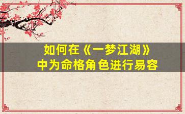 在《一梦江湖》(原《楚留香》手游)中,为命格角色进行易容需要按照以下步骤操作,同时需注意游戏版本更新可能带来的界面调整: