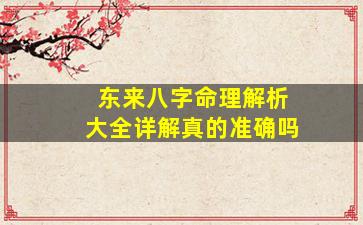 关于“东来八字命理解析大全”或其他命理体系的准确性问题,需要从多个角度理性分析,以下是一些关键点供参考: