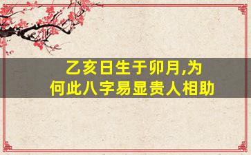 在八字命理中,乙亥日生于卯月(农历二月,惊蛰至清明期间)的命局易显贵人相助,主要与五行生克、地支藏干及十神配置有关。以下为具体分析: