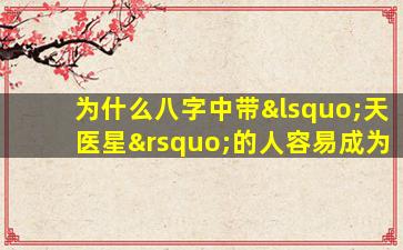 关于“八字中带‘天医星’的人容易成为医生”的说法,源于中国传统命理学中的一种象征性关联。这一观点并非科学定论,但可以从命理文化的逻辑和象征意义角度进行解释: