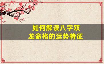 “双龙命格”并非传统八字命理学中的标准术语,但在民间或部分命理流派中,可能指代某种特定的八字组合(如地支双辰土、天干双壬水等)。要准确分析此类命格的运势特征,需结合具体八字结构和五行生克原理。以下从传统命理角度提供解读框架: