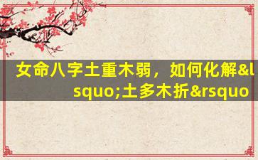 在八字命理中,“土多木折”是指五行土过旺而木过弱,导致木气受压制,可能影响健康、事业或情绪。针对女命八字土重木弱的情况,可通过以下方式调和五行,化解失衡: