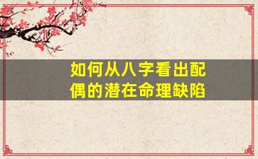 从八字命理分析配偶的潜在缺陷,需结合配偶宫(日支)与配偶星(男看财星,女看官杀)的综合状态,同时关注五行生克、十神配置及神煞影响。以下是具体分析思路: