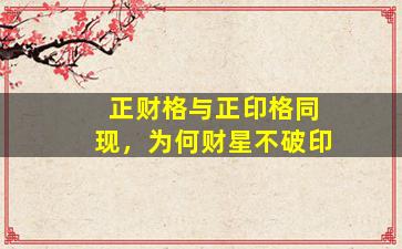 在八字命理中,正财格与正印格同现时财星不破印的情况,通常与以下命理逻辑有关: