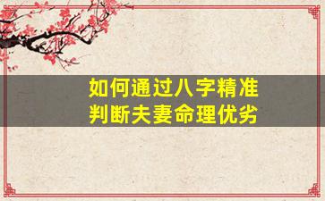 通过八字(四柱命理)判断夫妻命理优劣,需综合分析双方命局中的五行生克、十神配合、神煞吉凶以及大运流年的互动关系。以下是系统化的分析方法: