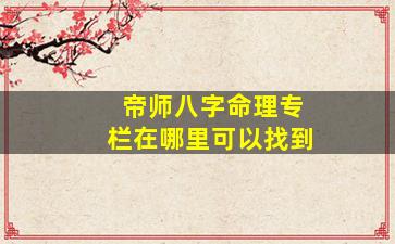 关于“帝师八字命理专栏”的查找,以下是详细的建议和注意事项: