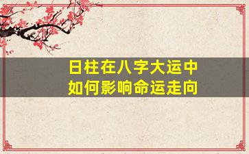 在八字命理中,日柱(即出生日的天干地支)是分析个人命运的核心要素之一,它代表命主自身、配偶及中年运势(30~45岁左右)。日柱与大运的结合,会通过五行生克、十神关系、刑冲合害等机制影响命运走向,具体表现如下: