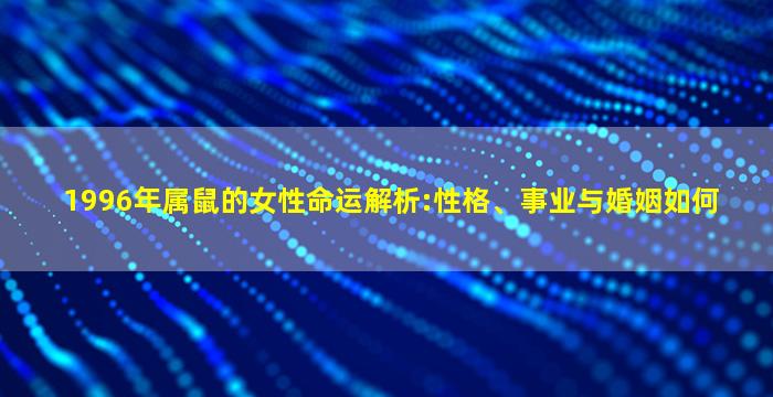 在中国传统命理学中,生肖和出生年份常被用于分析一个人的性格、事业和婚姻趋势。以下是基于1996年(农历丙子年)属鼠女性的一般性解析,供参考: