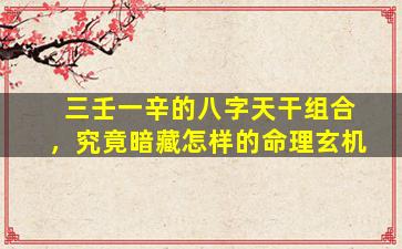 在中国传统命理学中,天干组合的分析需要结合五行生克、十神定位以及整体八字结构来综合判断。关于“三壬一辛”的天干组合(即天干中出现三个壬水和一个辛金),我们可以从以下几个角度解析其潜在命理特征:
