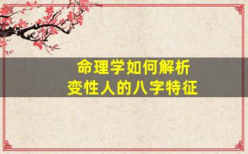命理学作为中国传统文化的一部分,主要通过八字(生辰八字)来解析个人的命运、性格和人生轨迹。对于变性人(跨性别者)的八字特征,命理学的解析并没有统一的定论,但可以从以下几个角度进行探讨: