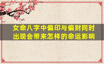 在八字命理中,偏印(枭神)与偏财同时出现于女命,其影响需结合十神特性、位置关系及整体格局综合分析。以下是可能的影响方向:
