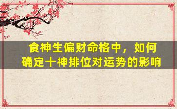 在命理学中,食神生偏财的命格是一种具有特定运势特征的组合,其十神排位对运势的影响需通过以下步骤综合分析: