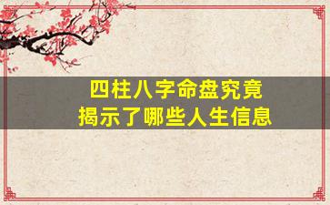 四柱八字命盘是中国传统命理学的核心工具之一,通过分析个人出生时的年、月、日、时四柱(共八个天干地支),揭示个体命运的趋势与特征。以下是其可能揭示的主要人生信息: