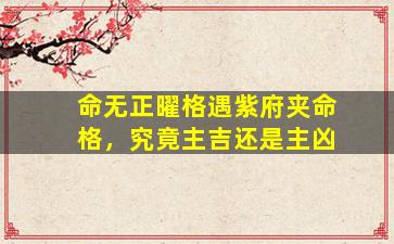 在紫微斗数中,“命无正曜格”与“紫府夹命格”的组合需要综合星曜、宫位、四化等多方面因素来判断吉凶,不可简单定论。以下是具体分析: