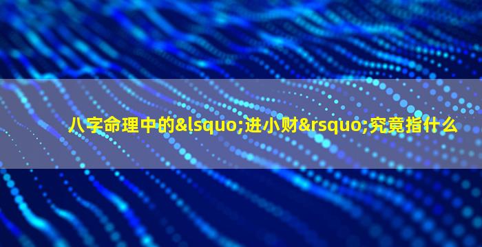 在八字命理中,“进小财”是一个描述财运的术语,通常指生活中获得的小额、稳定但非暴富性质的财源。其具体含义和判断方法如下: