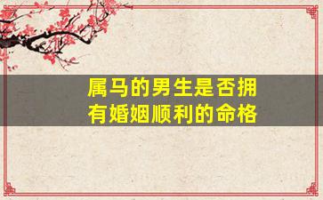 在传统命理学中,一个人的婚姻是否顺利通常需要结合其生辰八字(出生年、月、日、时的天干地支)、五行生克、配偶宫、十神配置等多方面因素综合分析,而非仅凭生肖(属相)就能简单判断。属马(午马)的男生是否婚姻顺利,可以参考以下传统命理角度的解读,但需注意这些说法并无科学依据,仅供参考: