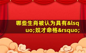 在中国传统命理学和民俗文化中,并没有“奴才命格”这一正式概念。命理分析通常强调个人运势的复杂性和后天努力的重要性,而非简单将生肖与“命格贵贱”挂钩。不过,某些民间说法或片面解读可能会基于生肖性格特点进行主观联想,需注意这些说法缺乏科学依据,仅供娱乐参考: