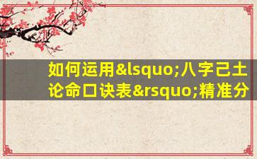运用“八字己土论命口诀表”精准分析命局,需要结合口诀的核心逻辑与八字命理的基础理论,分步骤系统解读。以下是具体方法: