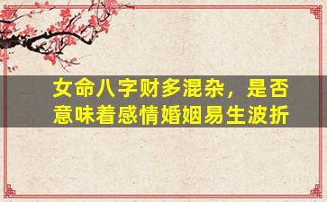 在传统八字命理学中,"财多混杂"对女命婚姻的影响确实是一个常被讨论的话题,但需结合具体命局辩证分析,不可一概而论。以下是专业角度的解读: