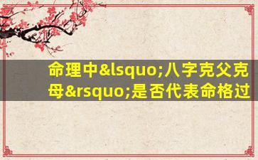 在传统命理学中,“八字克父克母”这一说法常被误解为“命格过硬”,但实际含义更为复杂,需结合具体理论辩证看待: