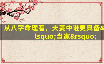 从八字命理的角度看,夫妻双方谁更具备“当家”潜质(即家庭中的决策能力、经济管理能力或主导地位),需综合双方命局中的以下特征分析: