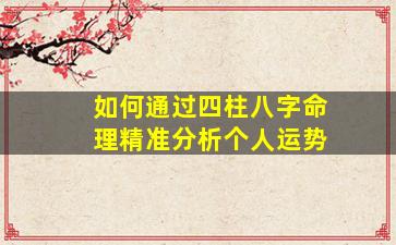 通过四柱八字(即生辰八字)精准分析个人运势,需要系统性地结合命局结构、五行生克、十神关系以及大运流年的动态变化。以下是具体步骤和方法: