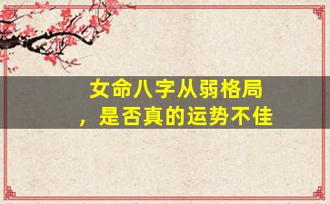 在八字命理中,"从弱格"(又称"从格")是一种特殊格局,指日主(出生日的天干)极弱,无法自立,需完全顺从命局中强势的五行力量。关于女命从弱格是否运势不佳的问题,需结合具体命局分析,不能一概而论。以下是关键要点: