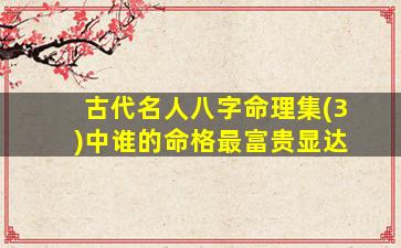 关于古代名人八字命理富贵显达的讨论,需结合传统命理学的核心理论(如五行平衡、格局层次、用神得力等)进行分析。以下综合部分历史名人的八字特点及命理评价,供参考: