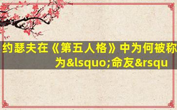 在《第五人格》中,约瑟夫(摄影师)被称为“命友”主要是玩家群体根据其角色特性衍生出的谐音梗和趣味称呼,具体原因如下: