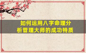 运用八字命理(四柱预测学)分析管理大师的成功特质,需结合命理学的五行生克、十神格局、神煞搭配等理论,从个人先天禀赋、性格优势、机遇把握等角度解读。以下是具体分析框架和示例: