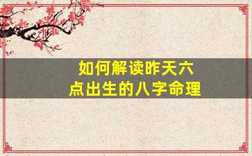解读八字命理需要根据具体的出生时间、日期和地点(时区)来排盘分析。由于您提到的“昨天六点”没有提供具体的日期和地点,我将以假设的日期(如2023年10月30日,北京时间18:00)为例,说明八字排盘的方法和解读逻辑。您可以根据实际日期和时区自行调整。