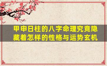 甲申日柱在八字命理中属于天干甲木与地支申金的组合,这一组合蕴含独特的五行生克关系和命理特质。以下从性格、事业、感情、健康及大运流年等方面解析其玄机: