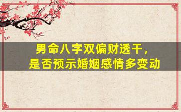 在八字命理中,偏财代表男性的异性缘、不稳定的财运及非正式的感情关系。若男命八字中有双偏财透干(即天干同时出现两个偏财星),确实可能对婚姻感情产生一定影响,但需结合全局分析,不可一概而论。以下是具体的解读方向: