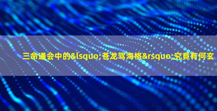 关于《三命通会》中的“苍龙驾海格”,这是一种较为罕见的命理格局,其玄机主要体现在五行配置、干支配合及特殊意象上。以下从命理角度分析其核心要点: