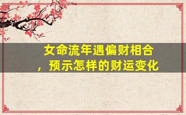在八字命理中,女命流年遇偏财相合(如天干五合或地支六合)通常预示着以下财运变化,需结合具体命局和大运综合分析: