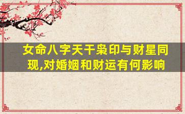 在八字命理中,女命天干同时出现枭印(偏印)与财星,需结合具体位置、五行生克及整体格局来分析对婚姻和财运的影响。以下是常见情况的解读: