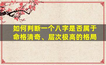 判断一个八字是否属于“命格清奇、层次极高”的格局,需结合传统命理学的核心理论,从格局、五行、十神、神煞、气机流通等多维度综合分析。以下为系统的判断方法:
