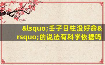关于“壬子日柱没好命”的说法,是否具有科学依据,可以从以下几个方面进行分析: