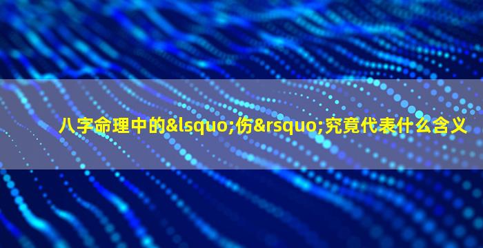 在八字命理中,“伤”通常指“伤官”,是十神之一,具有复杂多变的象征意义。其核心含义和影响可从以下几个层面理解: